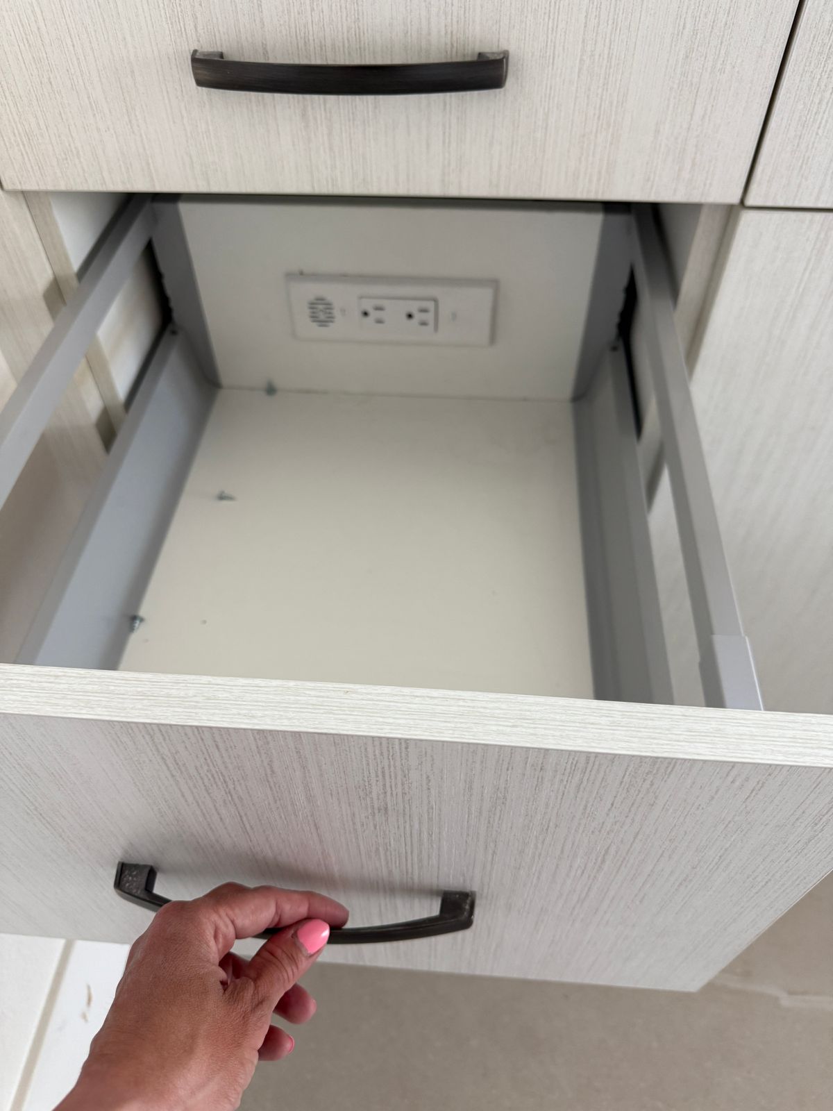 I recently purchased the Docking Drawer for my master bathroom vanity, and it has been a game-changer. We installed one on my husband’s side for all his shaving equipment (he has several machines) and another on my side for my hair tools like a hair dryer. Everything now stays neatly tucked away instead of cluttering the vanity surface.